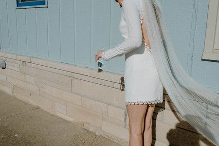 Not only that, but a critical piece of the shoot was the motel room, everyone's favorite place to take their bridal portraits. Just kidding! It was such a challenge to shoot a “bridal look” in a motel, while keeping it luxe and Alexis. I love how it came together. Each aspect of this shoot was thought out, even down to the cocktail that Alexis might drink… which of course would be champagne with a splash of Cardinal Spirits Bramble.